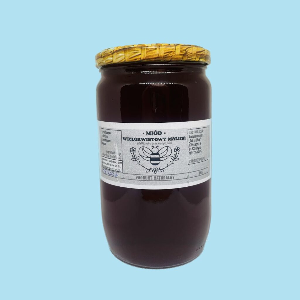 Miód wielokwiatowy pozyskiwany z kwiatów kwitnących malin.